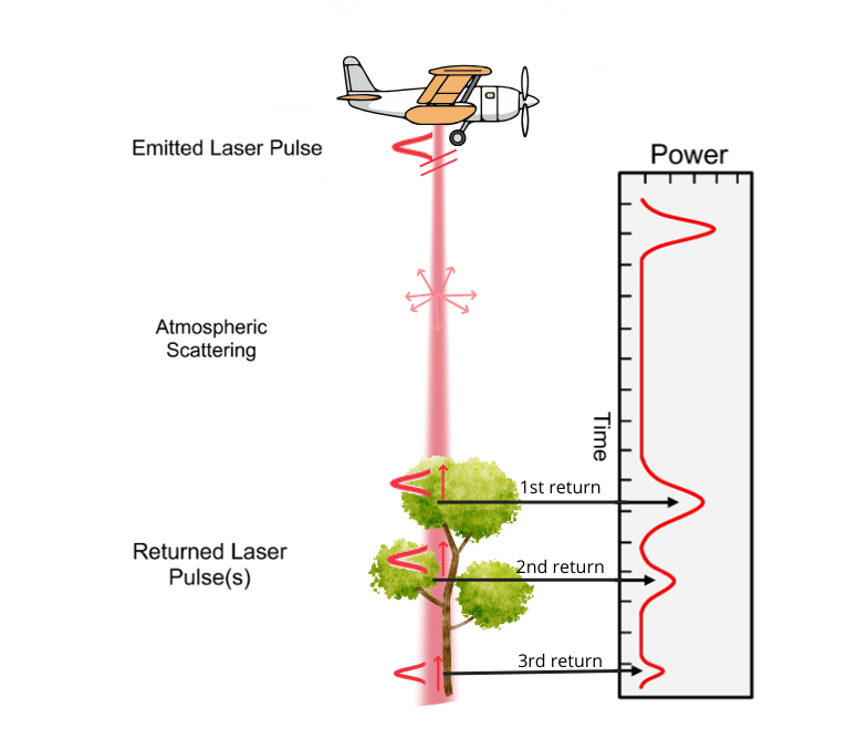 Full Waveform LiDAR: Records the complete energy distribution of the returned laser pulse, providing detailed information about vegetation structure at multiple heights. However, this is very information-rich and computationally demanding.