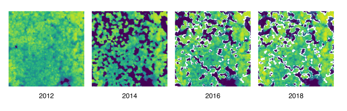 - Potapov model (Landsat-based, 30m): Better estimates of mean height but loses fine-scale resolution