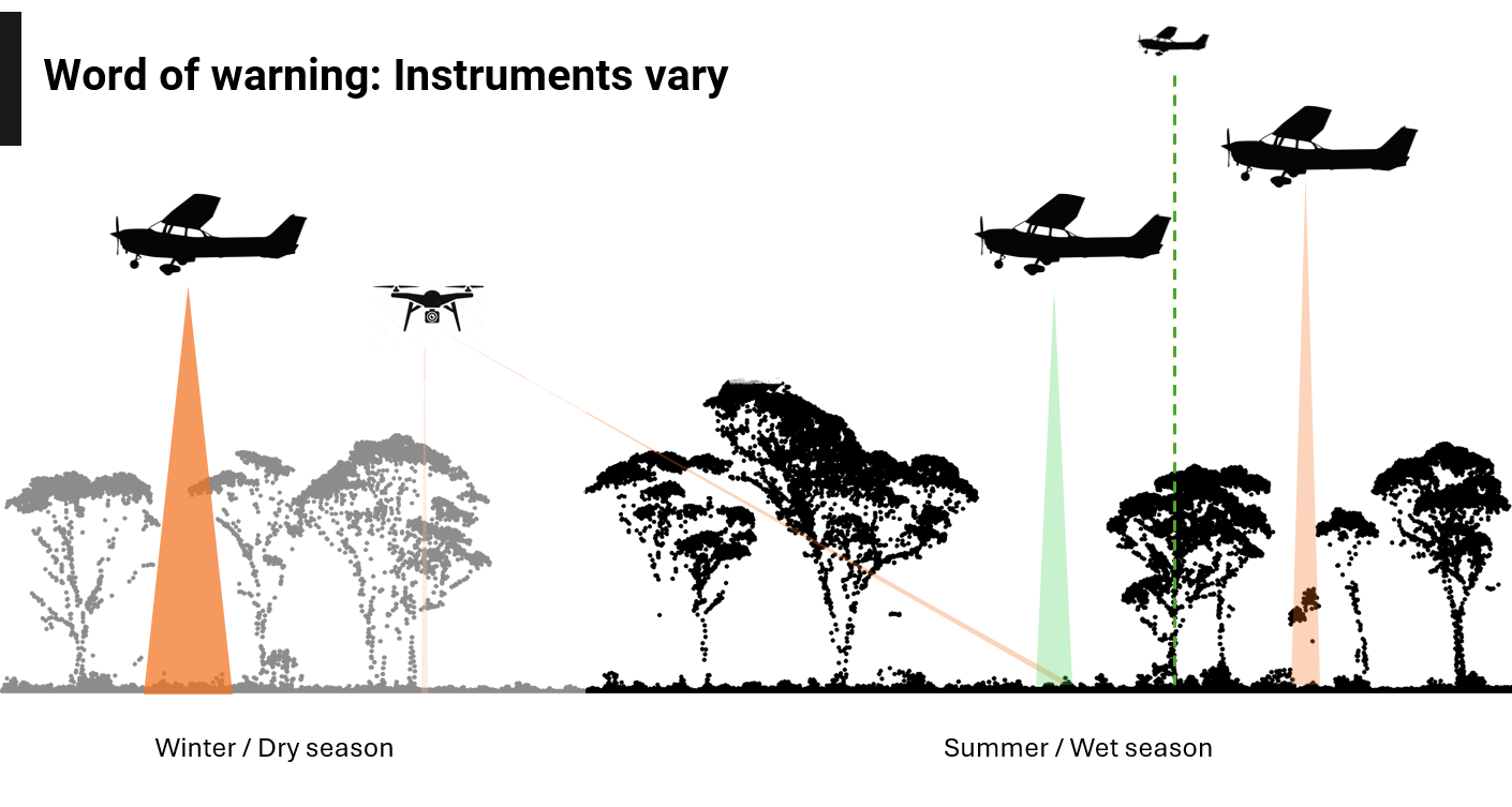 Within a single study area scanned with the same system, you can use relatively complex structural metrics safely. However, when comparing across different sensors or acquisition campaigns, you must be much more careful: