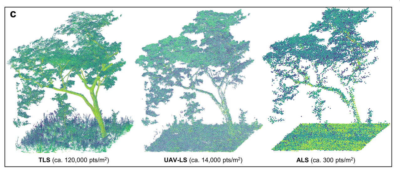 ALS provides continuous, high-resolution coverage over large areas, which cannot be achieved with ground-based measurements and generally offers much higher spatial detail than spaceborne alternatives.