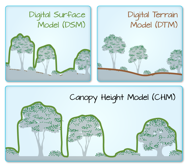 - Digital Surface Model (DSM): Top-of-canopy elevation